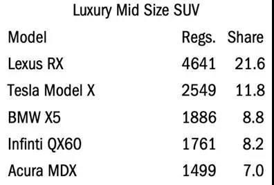 盡管特斯拉的整體交付量在上一季度顯著下降,但ModelS仍也是該領(lǐng)域的市場領(lǐng)導(dǎo)者。至于ModelX,它僅次于雷克薩斯RXSUV。