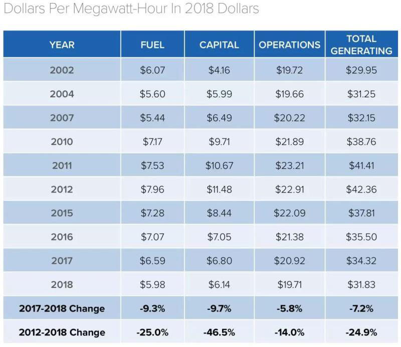 成本:2018年美國(guó)核電廠發(fā)電綜合成本3.183美分/千瓦時(shí)(人民幣0.21元/千瓦時(shí)),其中燃料0.598美分/千瓦時(shí)、資本折舊0.614美分/千瓦時(shí)、維護(hù)1.971美分/千瓦時(shí)。