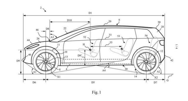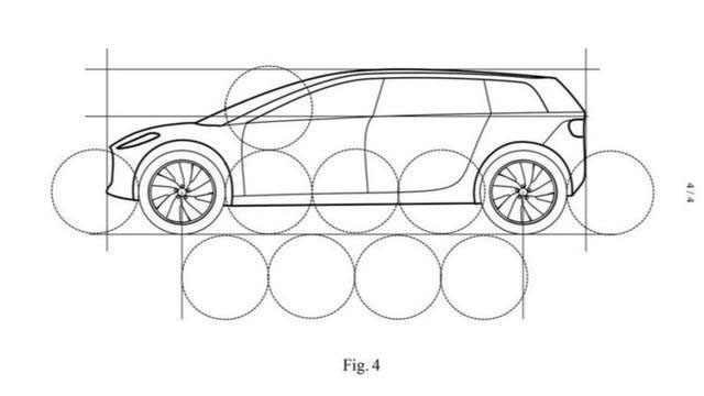 雖然是專利圖,但是我們?nèi)匀豢梢钥闯鲆恍┐魃?chē)的特色,極短的前后懸,超長(zhǎng)的軸距,超大的輪轂,D柱走線介乎于SUV與MPV之間,跨界風(fēng)格還是很濃的。