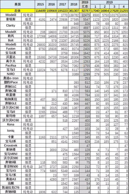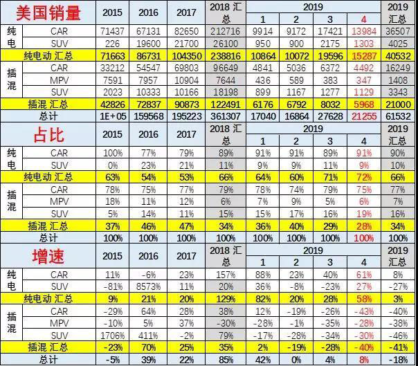 美國19年的純電動占比達到66%的較高份額。19年純電動的轎車是超強的。