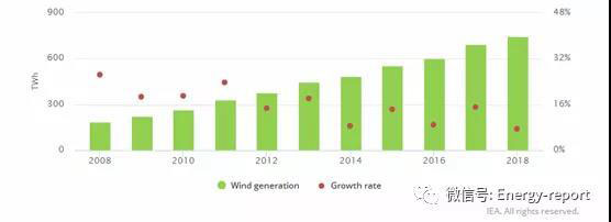 2018年,風(fēng)力發(fā)電量為744.6TWh,同比增加7.5%,其中美國(274.8TWh)、德國(114.1TWh)、英國(56.6TWh)和西班牙(49.7TWh)領(lǐng)先。 風(fēng)能為德國、英國和西班牙提供了18%的電量。增幅最大的是美國(+20.6TWh,+ 8.1%)、德國(+7.9TWh,+ 7.5%)和英國(+7.0TWh,+ 14.1%)。