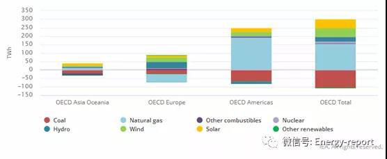 2017~2018年發(fā)電量變化,OECD,多種能源疊加