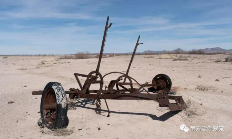 Lightning Dock地?zé)岚l(fā)電廠附近被廢棄的農(nóng)業(yè)設(shè)備。當(dāng)?shù)厝苏f,該州一直愿意拿自己的水資源冒險,來建設(shè)一個綠色能源項目。