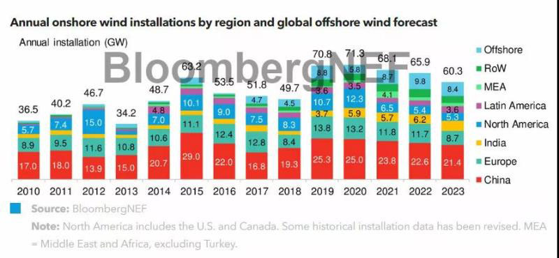 2019年全球陸上風(fēng)電新增裝機容量將達61.8GW