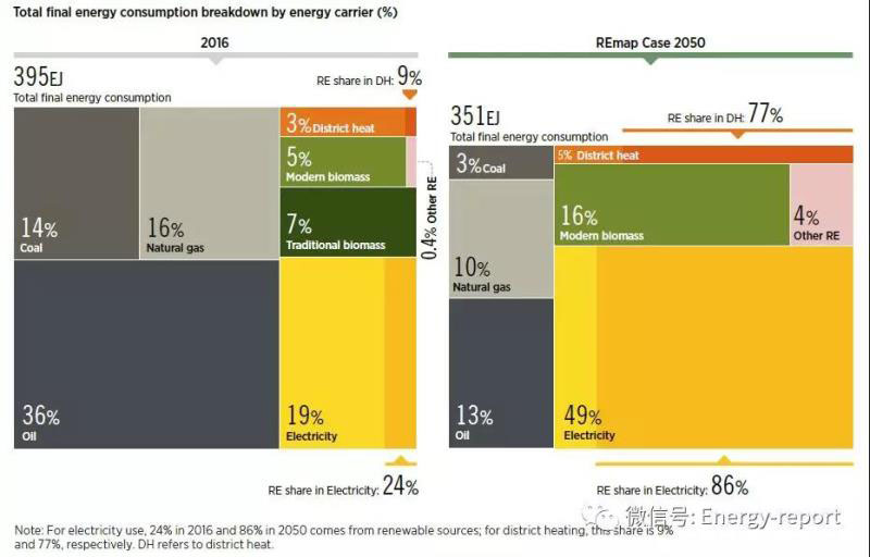 2019年4月,國際可再生能源署發(fā)布《全球能源轉(zhuǎn)型:2050年路線圖》(2019版)。