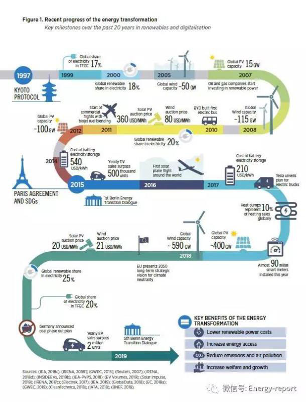 圖1 能源轉(zhuǎn)型的最新進(jìn)展—過去20年可再生能源和數(shù)字化方面的關(guān)鍵里程碑