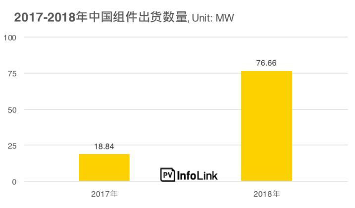 根據(jù)PV InfoLink中國海關(guān)出口數(shù)據(jù)庫顯示,2018全年自中國出口至沙特阿拉伯的光伏組件數(shù)量為76.66MW,和2017年相比組件出口數(shù)量成長三倍之多,2018年出貨組件預(yù)計大部分將用于2018年完成競標(biāo)的300MW大型項目。