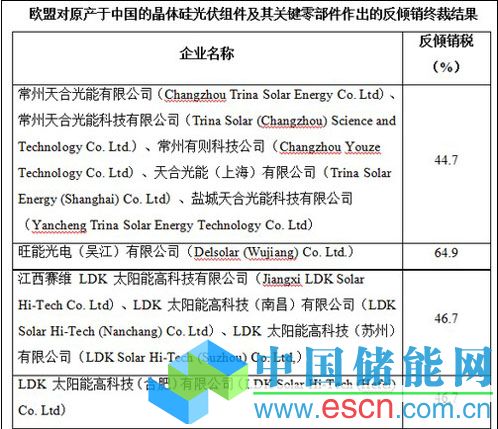 中國(guó)儲(chǔ)能網(wǎng)訊:2013年12月5日,歐盟對(duì)原產(chǎn)于中國(guó)的晶體硅光伏組件及關(guān)鍵零部件作出反傾銷終裁(見(jiàn)下表),并接受121家中國(guó)企業(yè)的價(jià)格承諾。該措施于2013年12月6日正式生效,并于2015年12月7日到期。涉案產(chǎn)品在歐盟合并關(guān)稅編碼ex85013100、ex85013200、ex85013300、ex85013400、ex85016120、ex85016180、ex85016200、ex85016300、ex85016400、ex85414090。