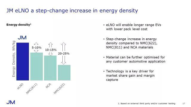 高工鋰電了解到,莊信萬(wàn)豐開(kāi)發(fā)的產(chǎn)品是一種高能量鎳基正極材料,內(nèi)部也稱之為增強(qiáng)型鎳酸鋰(eLNO),其能量密度超過(guò)了當(dāng)前所有的三元體系。