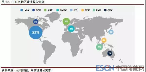 坐鎮(zhèn)歐美市場,大幅本土化拓張。DLR作為全球最大批發(fā)IDC廠商,業(yè)務思路與Equinix并不相同。雖然兩家公司都是利用REITs帶來的資金進行快速拓張,但比起Equinix在全球范圍內(nèi)發(fā)展,DLR更加青睞美國和歐洲市場。DLR數(shù)據(jù)中心業(yè)務的收入中,83%在北美地區(qū),13%在歐洲地區(qū),主要原因在于DLR提供的定制化IDC服務的主要客戶都集中在歐美地區(qū),亞太地區(qū)的客戶更加喜歡以Equinix為首的零售型IDC服務。