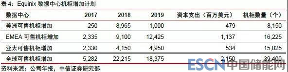 外延:快速兼并收購。從2007年至2017年累計收購全世界17家知名數(shù)據(jù)中心運營商。Equinix營收的快速增長便得益于其近年來不斷進行的收購策略, 2015年收購Bit-isle為公司貢獻了1.49億美元的收入;同于2015年收購的Telecity Group為其貢獻了4.01億美元的收入;2017年收購的Verizon則貢獻了3.59億美元的收入。