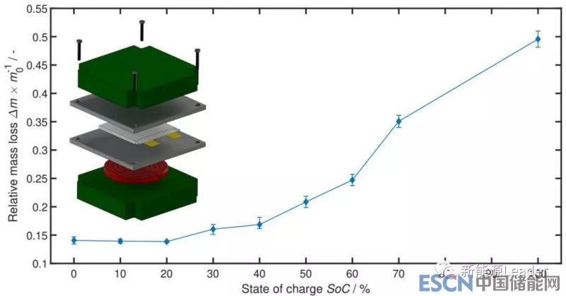 圖2. 電池不同SOC下加熱熱失控重量損失。