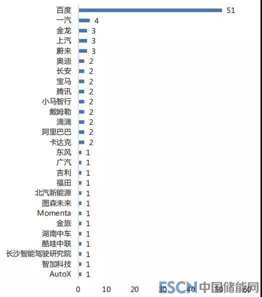 在牌照發(fā)放方面,截至 2018 年 12 月 25 日,國內(nèi)共有 27 家公司獲得了共95 張測試牌照。其中,百度分別從北京、平潭、重慶、長沙、天津五個城市共申請獲得 51 張測試牌照。除了一汽、金龍、上汽等整車企業(yè)之外,也有眾多互聯(lián)網(wǎng)公司,以及自動駕駛領(lǐng)域初創(chuàng)型企業(yè)展開自動駕駛道路測試的布局。