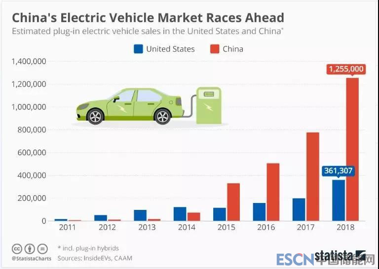 中國儲能網(wǎng)訊:全球電動汽車市場呈指數(shù)級增長,自2013年以來增長了六倍,比2015年翻了一番。但是,電動汽車的大部分增長都來自中國。2018年中國銷售了近130萬輛新能源汽車(插電式電動汽車和插電式混合動力汽車),比2017年增長了62%。