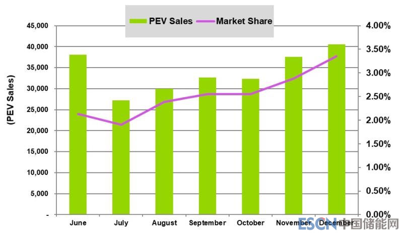 總體而言,12月插電式電動(dòng)汽車的銷量占?xì)W洲所有汽車銷量的近3.4%。