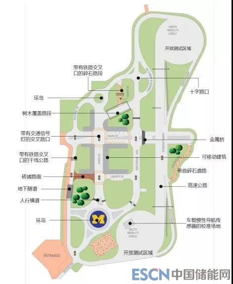 1. M-City。M-City 位于美國(guó)密歇根州安娜堡市的密歇根大學(xué)校園內(nèi),占地 32 英畝(約12.9 萬(wàn)平方米),由密歇根大學(xué)交通改造研究中心(MTC)負(fù)責(zé)設(shè)計(jì),是全球首個(gè)專門為測(cè)試自動(dòng)駕駛車而打造的測(cè)試場(chǎng)。M-City 已于 2015 年 7 月建成開(kāi)放。