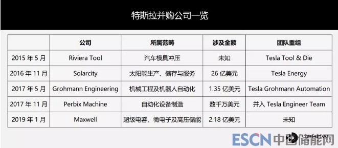 下面是特斯拉的并購公司一覽。