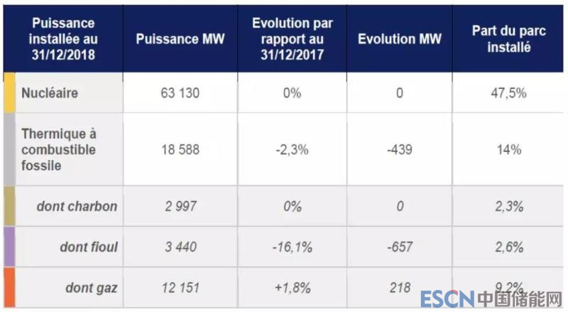 中國儲能網(wǎng)訊:根據(jù)法國國家電網(wǎng)RTE最新發(fā)布的統(tǒng)計(jì)數(shù)據(jù),2018年底法國本土發(fā)電裝機(jī)容量為132.889吉瓦,其中核電63.130吉瓦(47.5%)、水電25.510吉瓦(19.2%)、風(fēng)電15.108吉瓦(11.5%)、天然氣電12.151吉瓦(9.2%)、太陽能發(fā)電8.527吉瓦(6.4%)、燃油發(fā)電3.440吉瓦(2.6%)、煤電2.997吉瓦(2.3%)、生物質(zhì)發(fā)電2.026吉瓦(1.5%)。