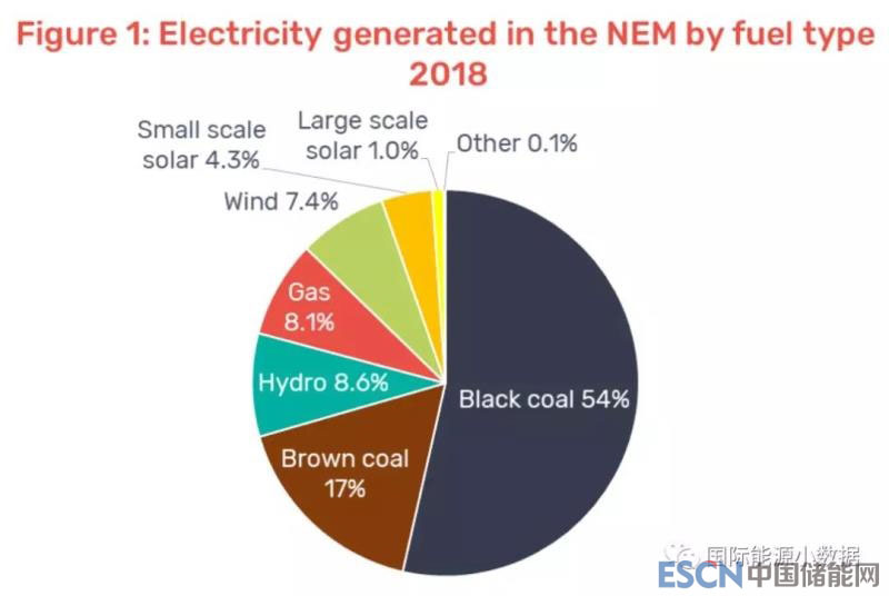 中國(guó)儲(chǔ)能網(wǎng)訊:根據(jù)澳大利亞電力市場(chǎng)匯總的初步數(shù)據(jù),2018年澳大利亞國(guó)家電力市場(chǎng)(NEM)煤電占比71%(其中硬煤占54%、褐煤17%),其次為水電(8.6%)、天然氣(8.1%)、風(fēng)電(7.4%)、太陽(yáng)能5.3%(其中小型光伏4.3%、大型光伏1.0%)。