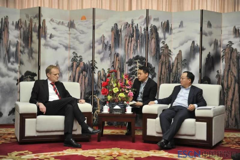 司徒嘉德先生(左一)對話南瑞集團(tuán)董事長、黨委書記奚國富先生(右一)