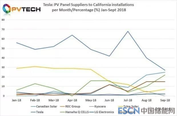 2018年7月,由于所有第三方供應商的份額下滑,特斯拉品牌組件在供應商總組合中的實際占比為68%。