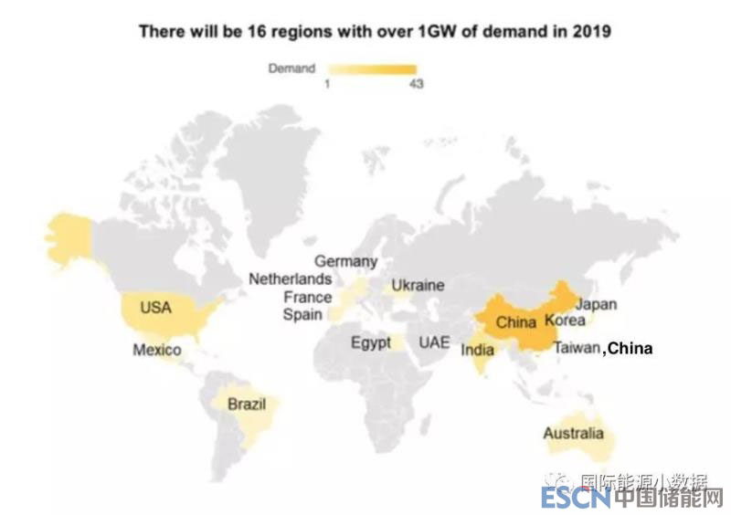 到2019年共有16個國家和地區(qū)躋身于吉瓦級的行列:中國、美國、印度、日本、德國、韓國、澳大利亞、巴西、墨西哥、埃及、阿聯(lián)酋、烏克蘭、荷蘭、法國、西班牙、中國臺灣。