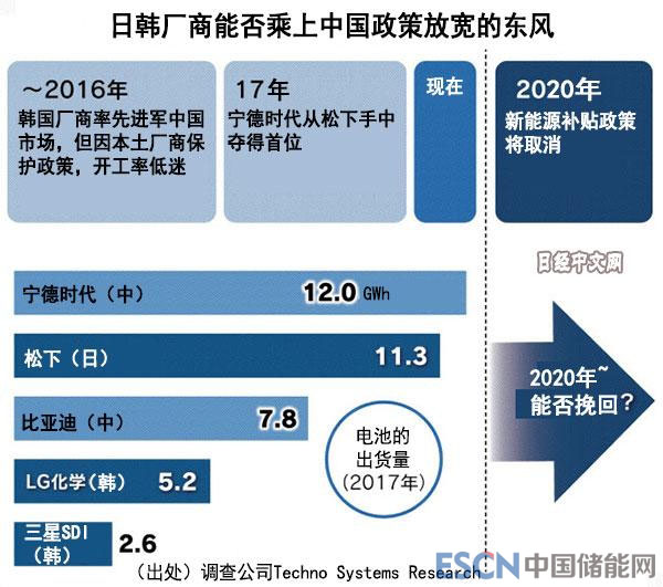 中國儲能網(wǎng)訊:據(jù)根據(jù)《日經中文網(wǎng)》25日報道,伴隨著中國政府放寬純電動汽車等新能源車的限制,出臺了吸引外資、促進新能源車普及的政策,日韓廠商基于對未來訂單增量的預期,紛紛計劃擴增中國車用電池產能,借此搶占市場。未來,中日韓三國車載電池生產廠商在中國市場上的競爭將日趨激烈。
