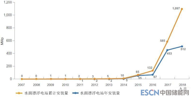 中國(guó)儲(chǔ)能網(wǎng)訊:近日,新加坡太陽(yáng)能研究所(SERIS)發(fā)布的一份報(bào)告顯示,截至2018年9月,全球水面漂浮電站項(xiàng)目裝機(jī)量大幅增長(zhǎng),累計(jì)裝機(jī)量近1.1GW。報(bào)告指出,歐美、亞洲的許多國(guó)家都在大力發(fā)展水面漂浮電站,尤其是近年來(lái)東南亞、南亞等新市場(chǎng)的逐步興起,帶動(dòng)了全球水面漂浮電站裝機(jī)容量和每年新增太陽(yáng)能發(fā)電量呈指數(shù)增長(zhǎng)(圖1)。其中,陽(yáng)光電源浮體及漂浮系統(tǒng)解決方案全球應(yīng)用規(guī)模達(dá)400MW,占全球總裝機(jī)量的三分之一以上。
