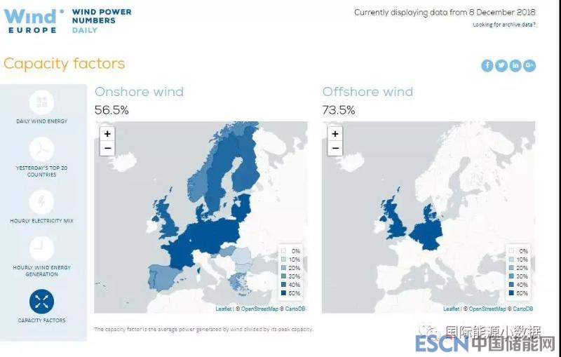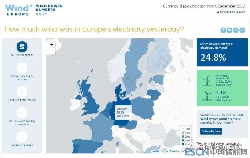 當(dāng)天歐洲各國(guó)的風(fēng)電比例如下: