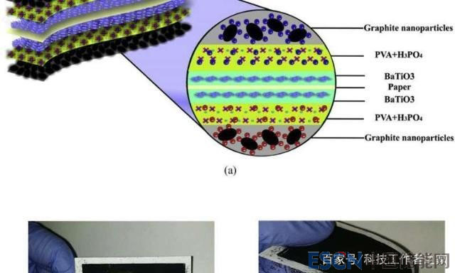 碳納米管具有良好的導(dǎo)熱、導(dǎo)電和儲(chǔ)能性質(zhì)。雖然它的強(qiáng)度很高,但卻兼有出色的柔性。阿瓦爾博士的團(tuán)隊(duì)對(duì)商用超級(jí)電容器的結(jié)構(gòu)進(jìn)行了調(diào)查研究,進(jìn)而制造了一種基于碳納米管紙的復(fù)合層電容紙。為了分隔復(fù)合層,他們了使用經(jīng)濟(jì)性的鈦酸鋇。這種復(fù)合層超級(jí)電容紙即使被折疊起來,也能有效存儲(chǔ)能量。