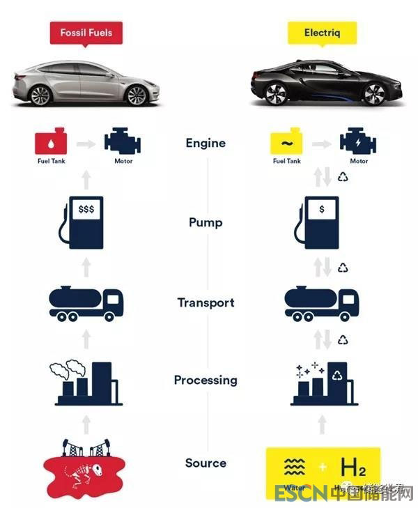 中國(guó)儲(chǔ)能網(wǎng)訊:面對(duì)日益嚴(yán)峻的能源問(wèn)題和環(huán)境問(wèn)題,目前人們都在選擇可再生且低排放甚至零排放的能源形式,時(shí)下在汽車(chē)領(lǐng)域逐漸興起的電動(dòng)車(chē)、氫燃料電池車(chē)就是比燃油車(chē)更為清潔的車(chē)型。據(jù)外媒報(bào)道,初創(chuàng)公司Electriq~Global新推出了一款安全廉價(jià)的清潔燃料,其中水占據(jù)總成分的60%,該公司通過(guò)特殊技術(shù)可從此水基燃料中提取氫氣并利用氫能發(fā)電,進(jìn)而為汽車(chē)提供動(dòng)力。