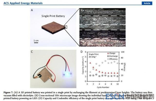 科學團隊在《ACS Applied Energy Materials》上展示了他們的研究成果[PDF]。從理論上來說,3D打印技術可以制造幾乎任何形狀,包括電池、框架和電子元件在內的完整設備。不過目前3D打印所使用的聚合物(例如PLA)并非離子導體,這是打印電池的主要障礙。