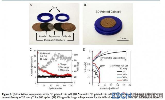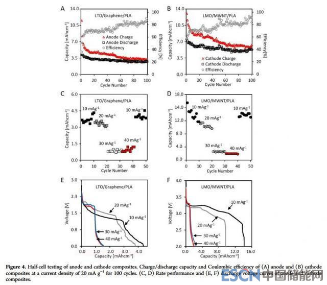為此Christopher Reyes,Benjamin Wiley及其同事開發(fā)出了能夠使用廉價3D打印機完整打印鋰離子電池的工藝。研究人員通過注入電解質溶液來增加PLA的離子電導率,此外在電池的陽極和陰極中參入石墨烯和多壁碳納米管來增加電池的電導率。