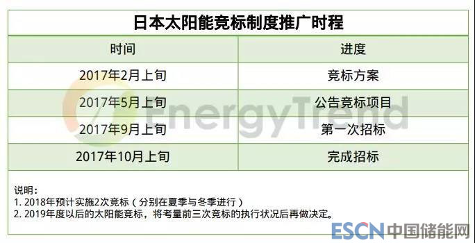 此外,日本于2017年10月導(dǎo)入太陽(yáng)能競(jìng)標(biāo)制度,希望透過(guò)競(jìng)標(biāo)制度來(lái)推動(dòng)降價(jià)。日本經(jīng)產(chǎn)省針對(duì)太陽(yáng)能競(jìng)標(biāo)制度的推廣時(shí)程為:2017年二月上旬推出競(jìng)標(biāo)方案、5月上旬公告競(jìng)標(biāo)項(xiàng)目、9月上旬展開第一次招標(biāo),并于10月上旬完成。2017年會(huì)先實(shí)施第一次太陽(yáng)能競(jìng)標(biāo),2018年則預(yù)計(jì)實(shí)施2次競(jìng)標(biāo)(分別在夏季與冬季進(jìn)行),共規(guī)劃了三次標(biāo)案。2019年度以后的太陽(yáng)能競(jìng)標(biāo),則將考量前三次競(jìng)標(biāo)的執(zhí)行狀況后再做決定。