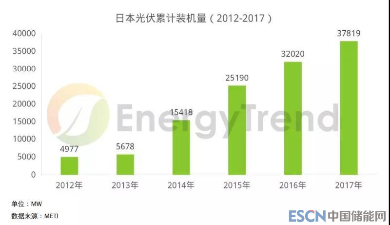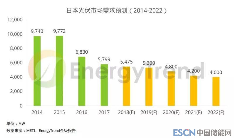 2018年輸出在10kW以上的產(chǎn)業(yè)用太陽(yáng)能發(fā)電收購(gòu)價(jià)格,將較2017年度的21日元調(diào)降14%(3日元)至18日元,將連續(xù)第6年調(diào)降,且價(jià)格不到2012年7月開始導(dǎo)入FIT制度(太陽(yáng)能發(fā)電收購(gòu)制度,導(dǎo)入時(shí)的收購(gòu)價(jià)為40日元)時(shí)的一半水準(zhǔn)。
