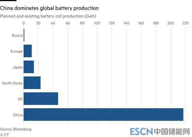 根據(jù)彭博社的數(shù)據(jù),全球現(xiàn)有及規(guī)劃的電池產(chǎn)能大約80%在亞洲,僅中國就占69%。而美國占15%,歐盟只占不到4%。