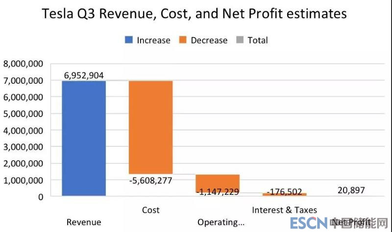 10月4日,Cleantechnica對特斯拉Q3季度的盈利情況進(jìn)行了預(yù)測,預(yù)計特斯拉在該季度的凈利潤將是20897000美元。