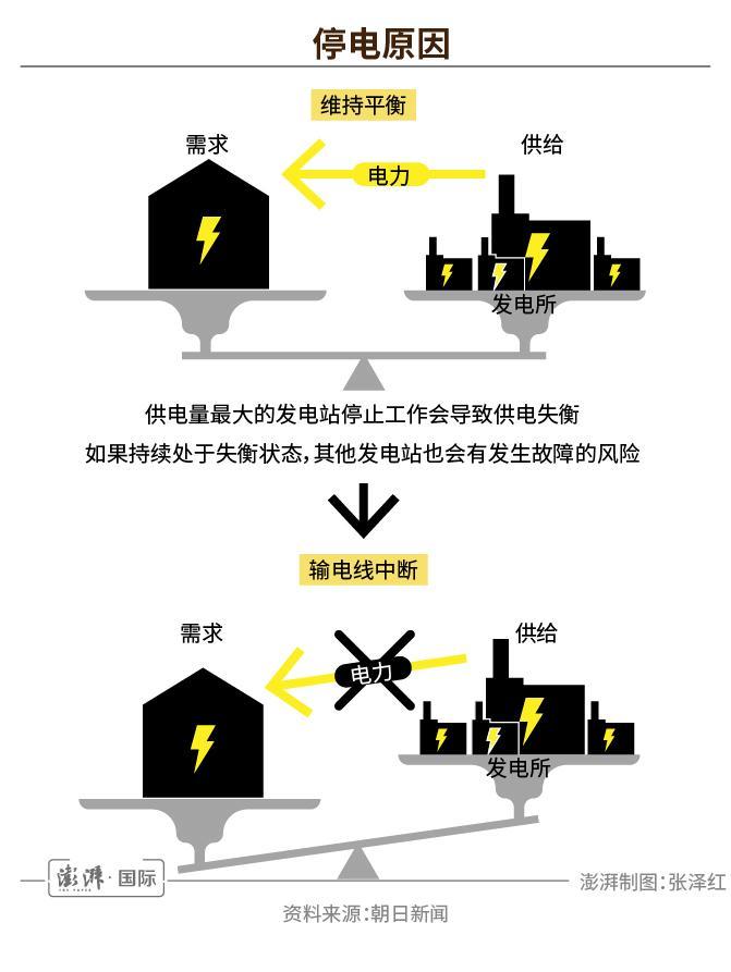 北海道電力公司稱,導(dǎo)致此次大規(guī)模停電的原因是北海道電力公司發(fā)電量最大的苫東厚真火力發(fā)電站在地震發(fā)生后停機(jī),導(dǎo)致電力供需失衡造成連鎖效應(yīng),致使北海道其他火力發(fā)電站也全部停止運(yùn)轉(zhuǎn),從而出現(xiàn)電網(wǎng)癱瘓。