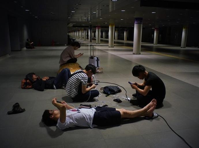 由于停電導(dǎo)致北海道內(nèi)交通停滯,札幌市政府為歸家困難者開放平時(shí)晚上會(huì)關(guān)閉的地下通道。《朝日新聞》報(bào)道,6日深夜約有40人拿著分發(fā)所得的毛巾鋪在地上休息。