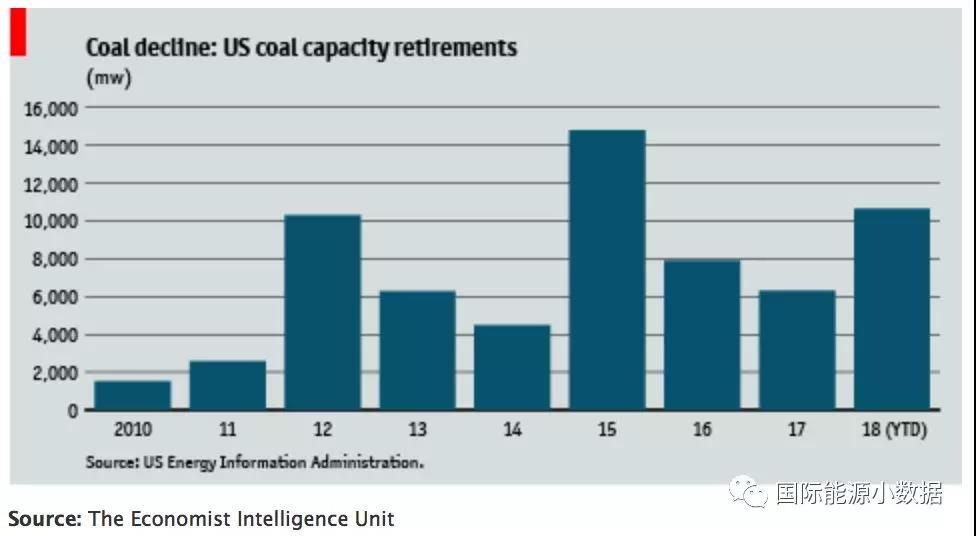 中國儲(chǔ)能網(wǎng)訊:來自美國能源信息署(EIA)的數(shù)據(jù)顯示,2017年1月至2018年6月已退役約17,000兆瓦(MW)的燃煤電廠。在特朗普任職的第一年2017年就有6,300兆瓦退役,而在2018年的前6個(gè)月退役煤電已達(dá)到10,650兆瓦左右。 而在2012年至2016年期間,約有43,000兆瓦的煤炭產(chǎn)能退役,因此盡管特朗普為燃煤電力行業(yè)創(chuàng)造的政策環(huán)境更為積極,但自2017年以來美國煤電延續(xù)了退役的勢(shì)頭。