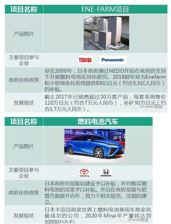 日本是資源短缺型國(guó)家,因此非常積極的探索石油以外的其他能源,日本政府對(duì)氫能和燃料電池的推廣力度在世界范圍內(nèi)都是最大的。目前,日本在家庭用燃料電池?zé)犭娐?lián)供固定電站和燃料電池汽車商業(yè)化運(yùn)作方面都是最成功的。