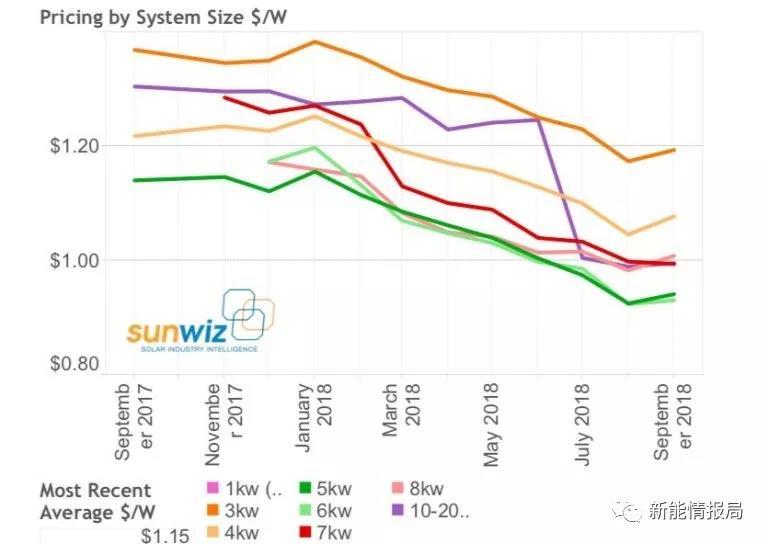 Sunwiz的數(shù)據(jù)顯示,9月以來各類型的光伏系統(tǒng)價(jià)格均略有上漲。