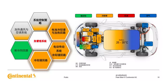 在近日舉行的2018未來出行大會上,大陸集團(tuán)就對外展示了其熱管理解決方案,該方案由系統(tǒng)控制策略、電池冷卻液與加熱回路、電動傳動系統(tǒng)冷卻液回路、冷卻液回路、制冷劑回路、加熱通風(fēng)與空調(diào)系統(tǒng)等6大部分。其組件產(chǎn)品包括傳感器、節(jié)能耐用的電子水泵、智能型冷卻液流量控制閥以及管線和軟管等。
