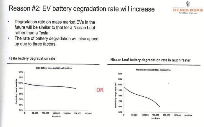 此言一出,舉座嘩然,與許多人的預(yù)期截然相反,他(她)們以為未來電池的性能可堪比特斯拉主動冷卻式鋰離子蓄電池組。他表示,未來的電池會出現(xiàn)一定程度上的“容量衰減(capacity fade)”。由于衰減速度加快了20%,導(dǎo)致其平均使用壽命只有5-6年。
