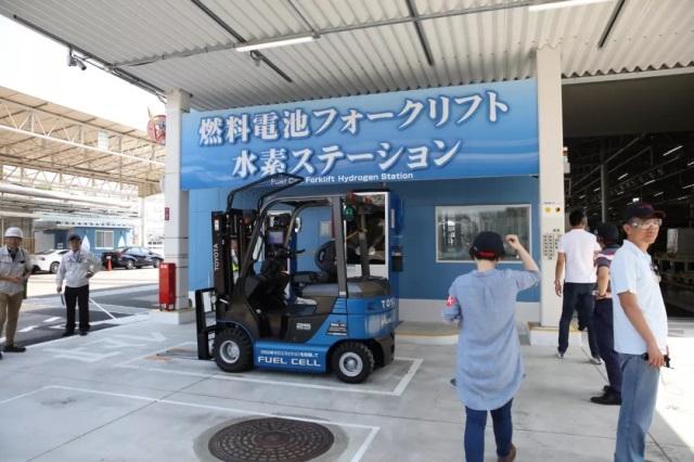 除了向社會(huì)提供氫燃料電池車出行工具,為達(dá)到利用氫能源建設(shè)環(huán)保工廠的需求,豐田在今年3月份向元町工廠投入20臺(tái)由豐田自動(dòng)織機(jī)公司生產(chǎn)的氫燃料電池叉車(以下簡(jiǎn)稱“FC叉車”),同時(shí)在元町工廠新建FC叉車專用加氫站。目前,豐田在元町工廠投入的FC叉車達(dá)到22臺(tái)。