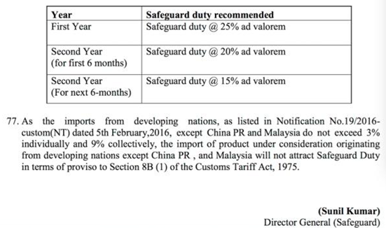 今年1月5日,印方做出該案初裁,印度保障措施總局向印度中央政府提出臨時措施建議,即對進(jìn)入印度的太陽能光伏產(chǎn)品征收70%的從價稅作為臨時保障措施稅,為期200天。