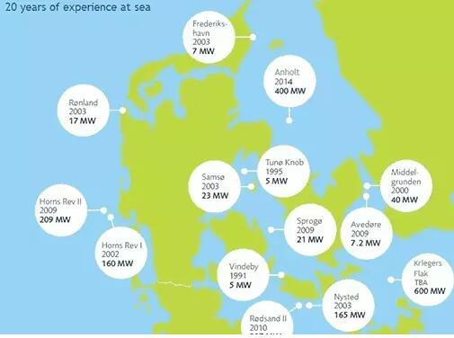 丹麥已投運、已批準(zhǔn)或在建的海上風(fēng)電場包括406.7MW的Horns Rev 3、650MW的Kriegers Flak,以及Vesterhav Syd和Vesterhav Nord近岸風(fēng)場。