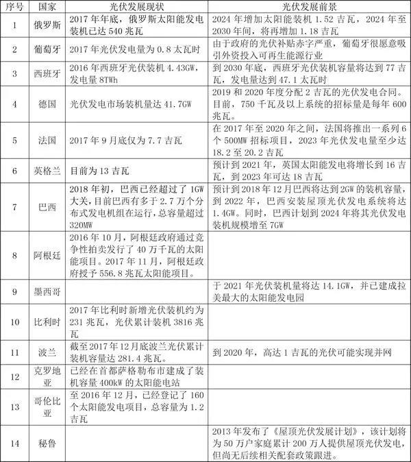 2018年3月,法國政府明確表示要大力發(fā)展太陽能產(chǎn)業(yè),其發(fā)展目標(biāo)有:2023年光伏發(fā)電量至少達(dá)18.2至20.2吉瓦,而截止2017年9月底僅為7.7吉瓦。法國政府將把光伏發(fā)電量提高2-3倍,同時到2030年法國可再生能源發(fā)電量將占總量的32,而目前僅為16%。由此可見,法國電力市場中的光伏需求量還有非常大的缺口。在2017年至2020年之間,法國將推出一系列6個500MW招標(biāo)項目,以提高太陽能光伏產(chǎn)業(yè)的比重,改變核電占比過大的現(xiàn)狀,增加綠能發(fā)電的數(shù)量。