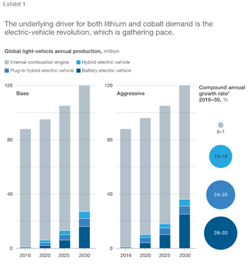 圖1鋰和鈷需求的潛在驅(qū)動力源于電動汽車革命,而革命正在加速
