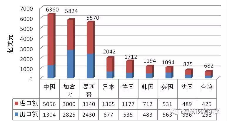 圖1 2017年美國與主要貿易伙伴國貿易情況